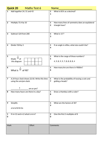 End of Term Maths Quiz.